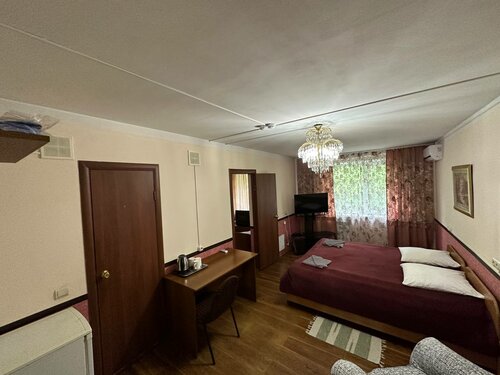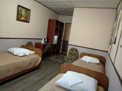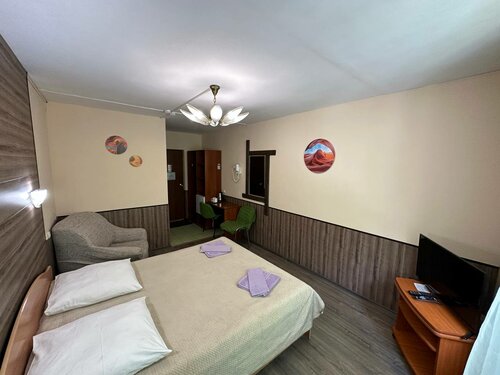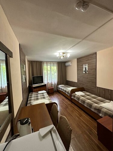 Прекрасный комфортабельный номер. В номере есть всё, кроме еды(еду или с собой или у них там кормят - не интересовался). В номере чисто, уютно по домашнему 👌. Чайник, кондиционер, телевизор - ВСЁ ЕСТЬ. Душевая кабина в номере всегда к вашим услугам. Руководителю и персоналу гостиницы желаю процветания, довольных клиентов и всего самого наилучшего 👌